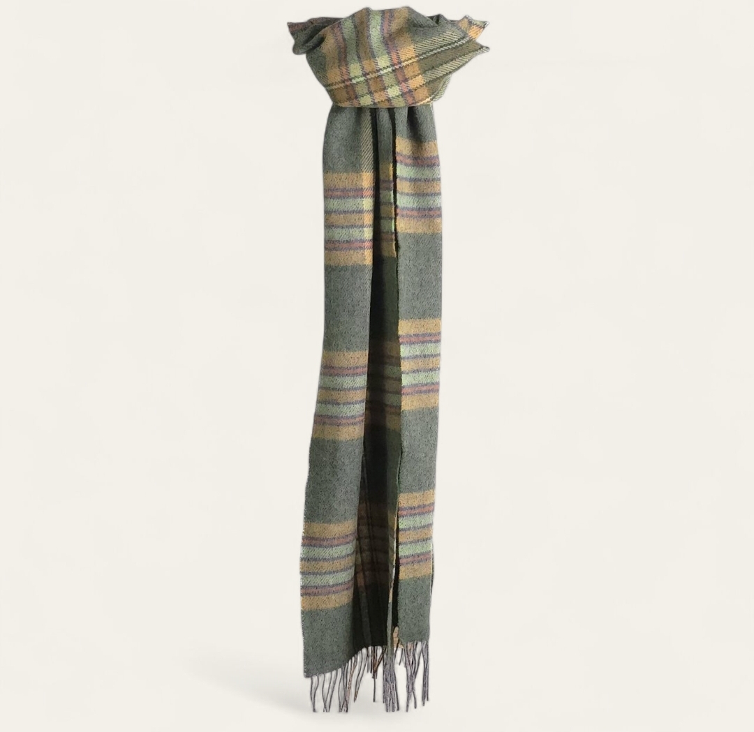 Bufanda de lana 100% lambswool. Tamaño 190 x 25 cm. «Made in Ireland». Es de la firma belga City Sport, que se especializa en la fabricación de gorras, boinas y otros accesorios para la cabeza, con más de 120 años de historia, al igual que Galán Camisería y un enfoque en la confección artesanal y la calidad de sus materiales. Fue fundada en Bélgica en 1898 por el comerciante de telas Víctor Declercq.