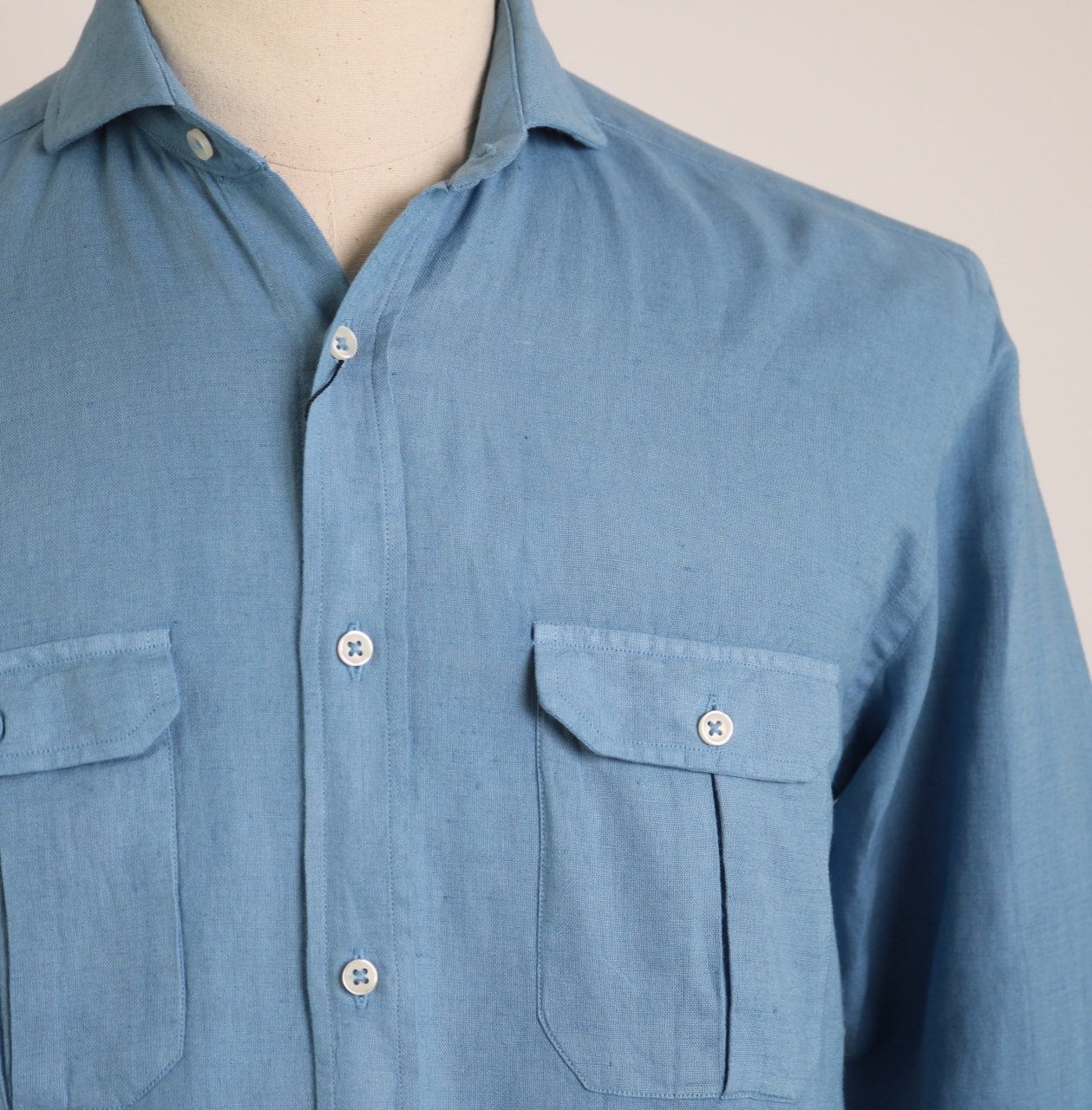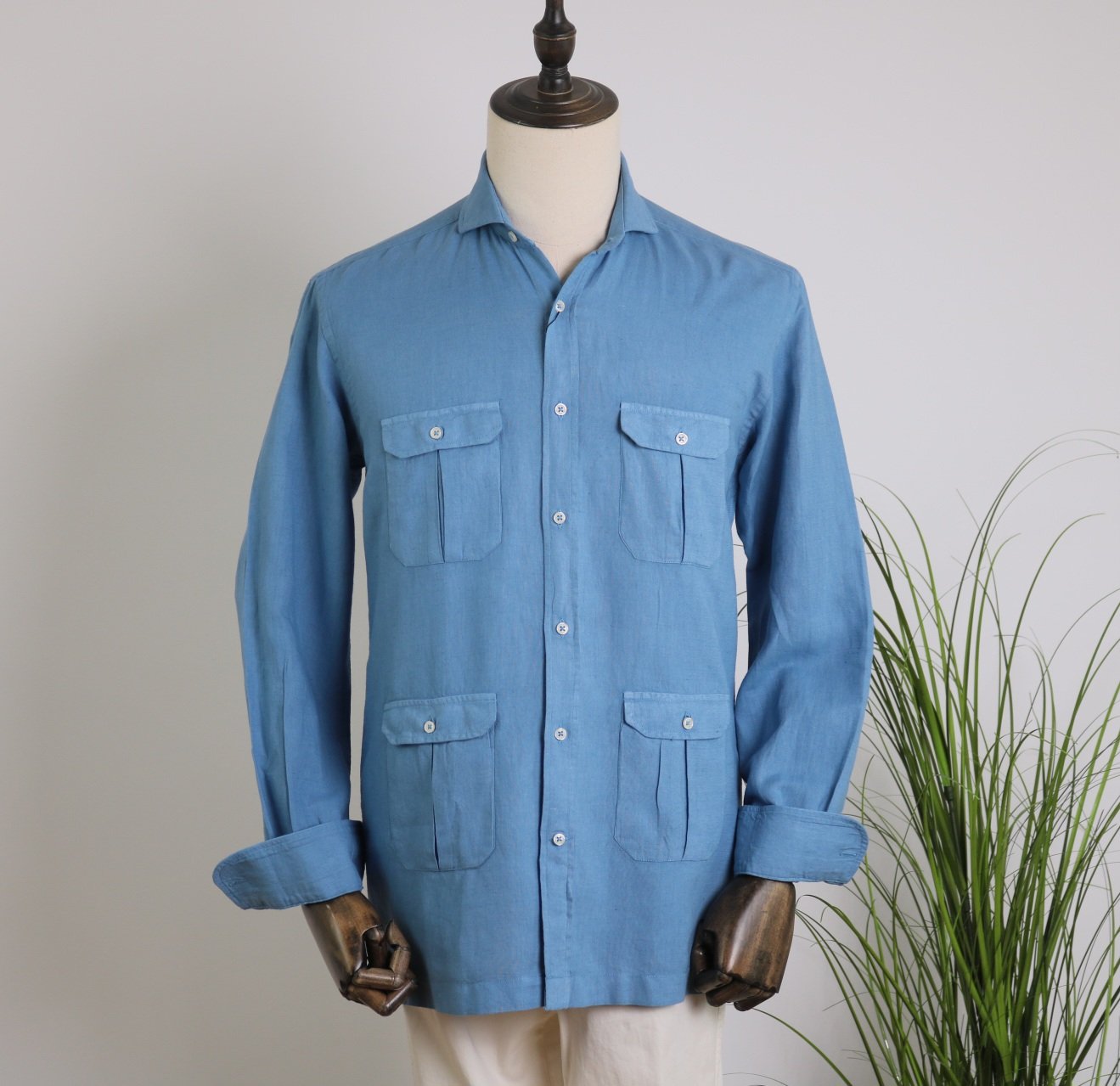 Camisa 4 bolsillos lino/algodón azul