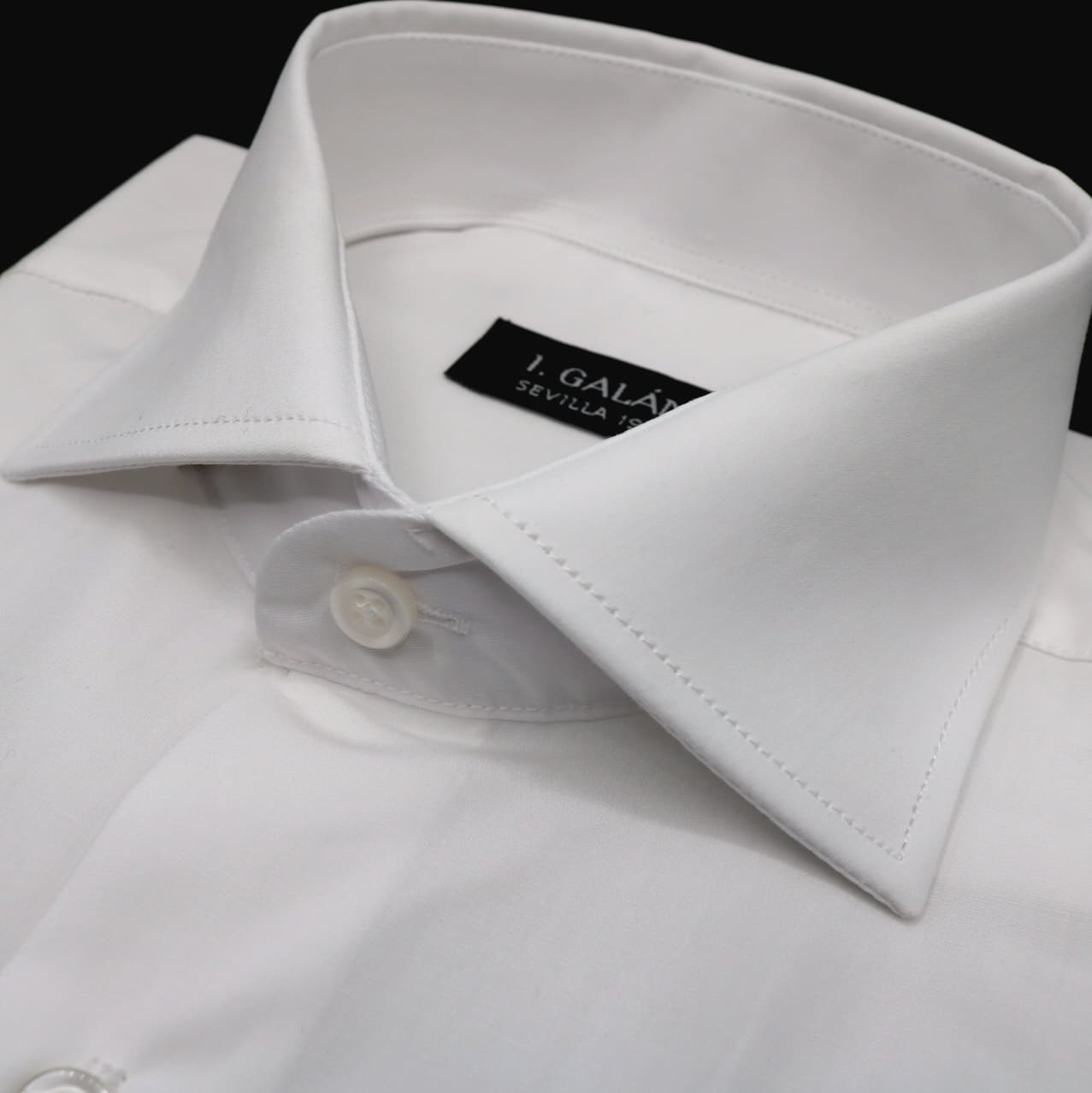 Camisa de vestir, 100% algodón, popelín de algodón color blanco. Con cuello semi italiano, para usar con corbata y puño doble con punta redondeada, para usar con gemelo. La vestibilidad de esta camisa es regular fit.