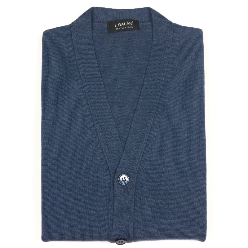 Cardigan clásico de caballero. Composición 50% lana 50 % acrílico. Alta durabilidad y resistencia al pilling. Con botones y dos bolsillos.