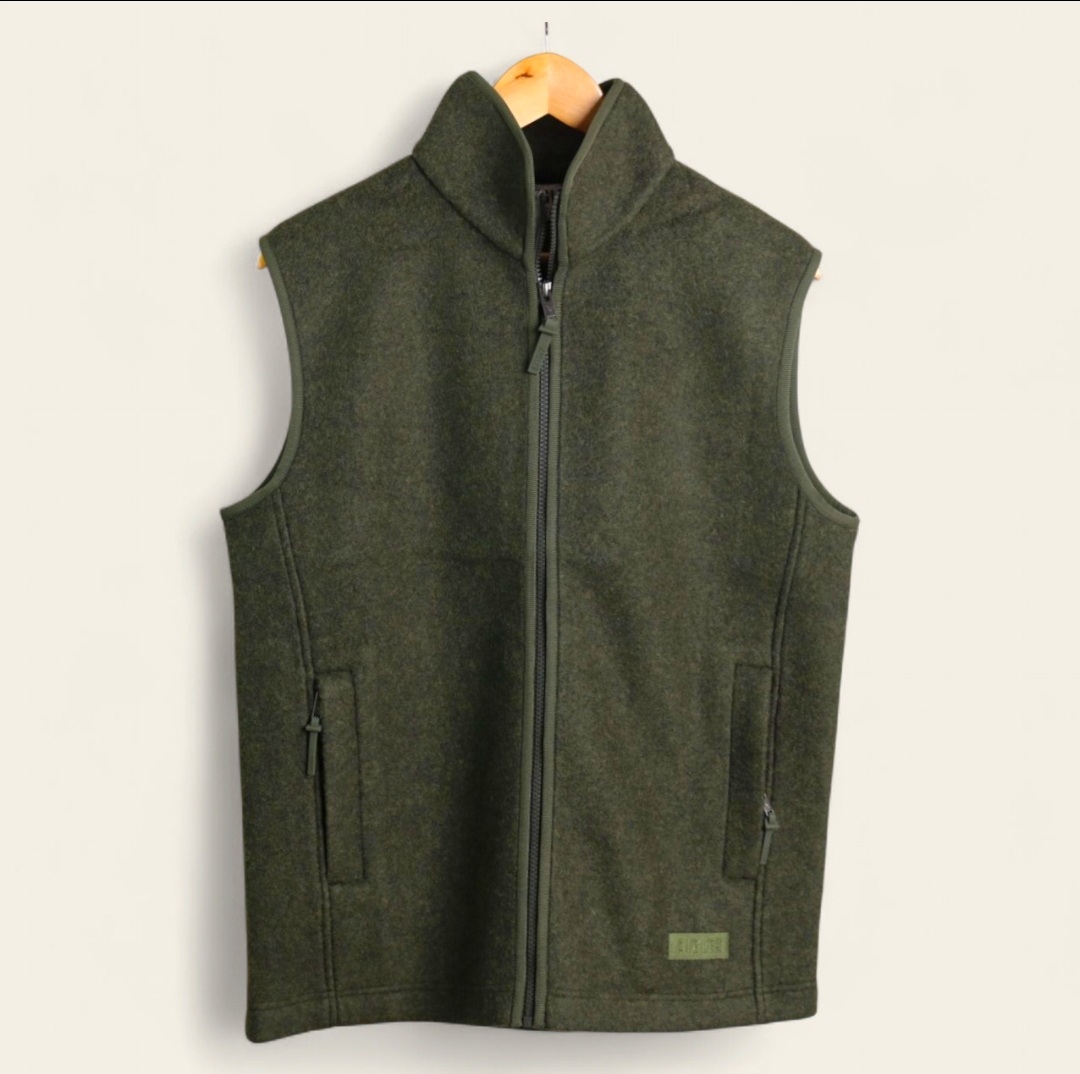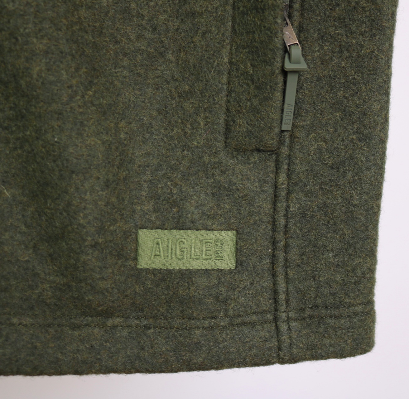 Chaleco sin mangas de la firma Aigle. Lleva cierre con cremallera y dos bolsillos laterales con cremallera. Composición 72% lana 28% poliéster.