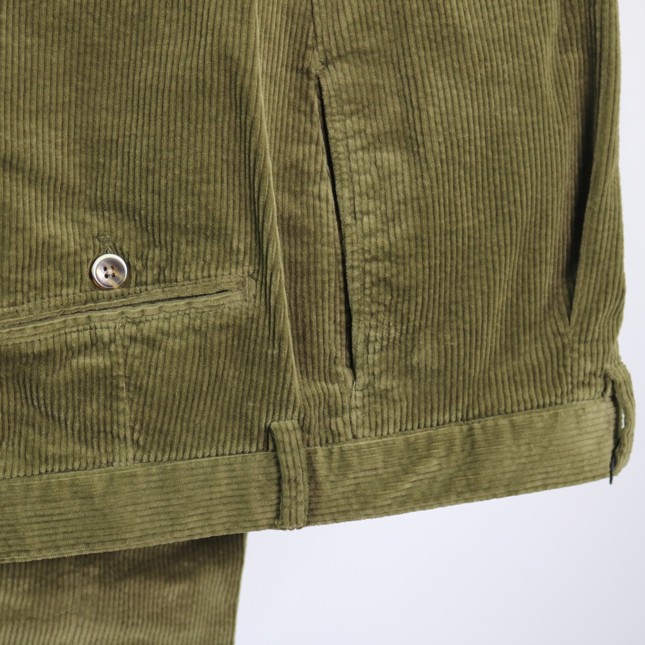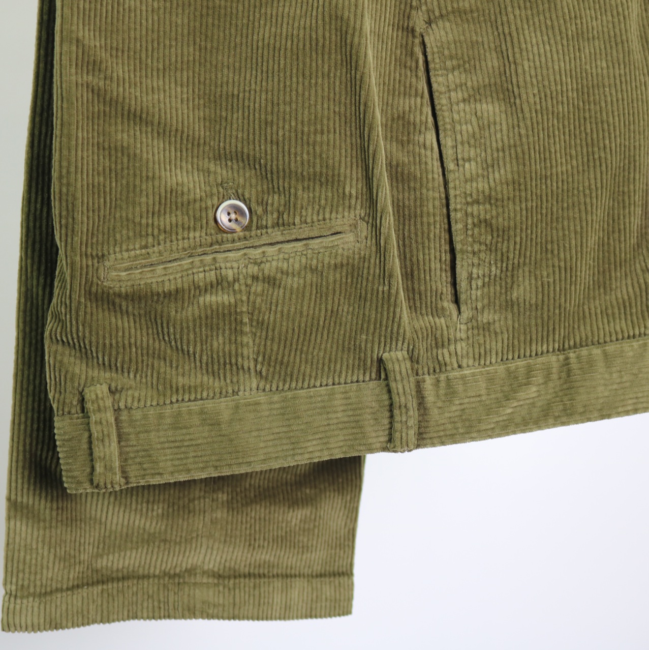 Pantalón de pana con una pinza, de caja amplia y boca 20,5 cm. Composición 98% algodón 2% elastano. Lleva los dos bolsillos laterales al costado, dos bolsillos traseros de cierre con botón y bolsillo monedero. Tiene una pinza. Fabricado en España.